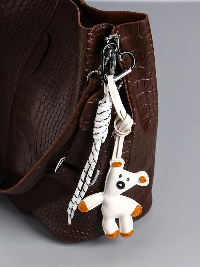 Брелок на карабине кожзам, текстиль "Медведь" белый, с узлом 27х8,8х1,5 см