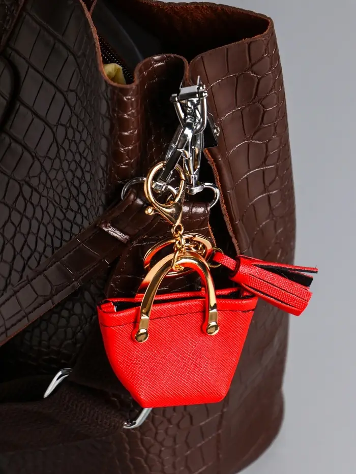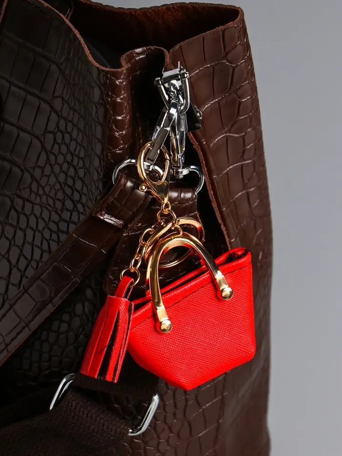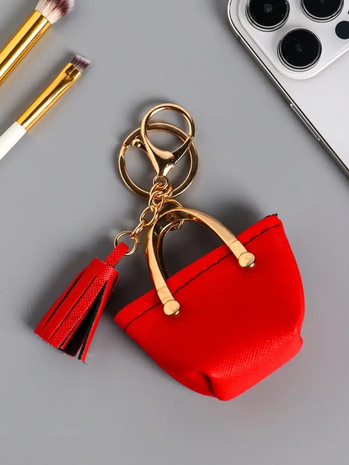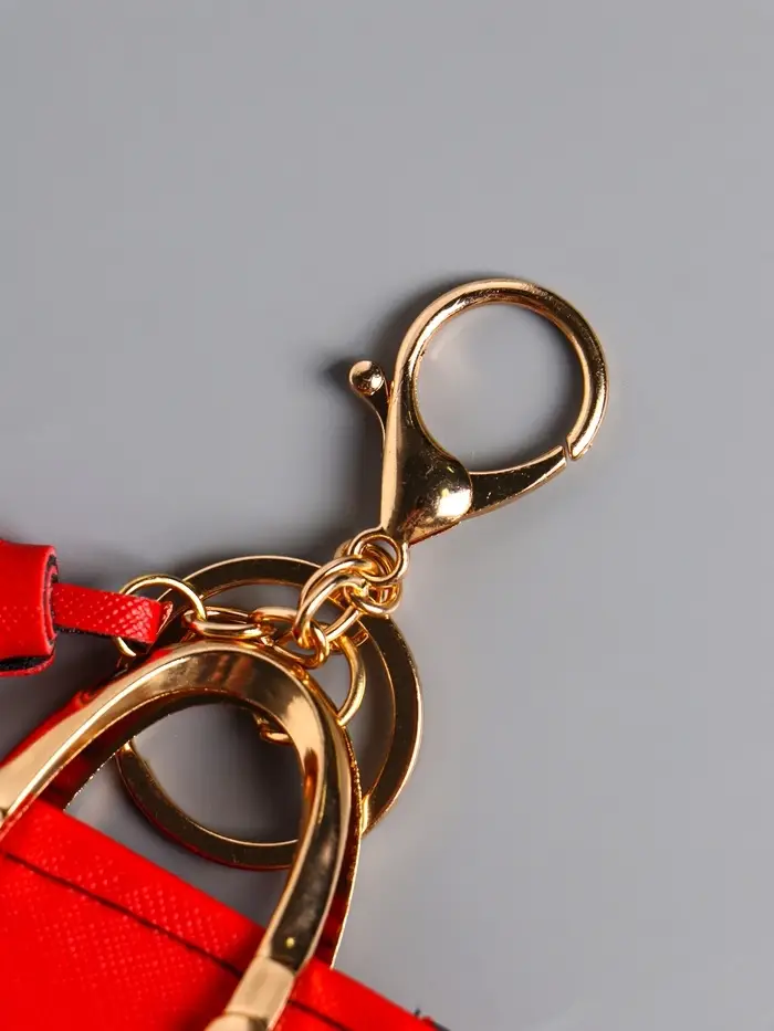 Брелок кожзам с карабином, с кистью "Сумка тоут" красная 6,5х3х7 см