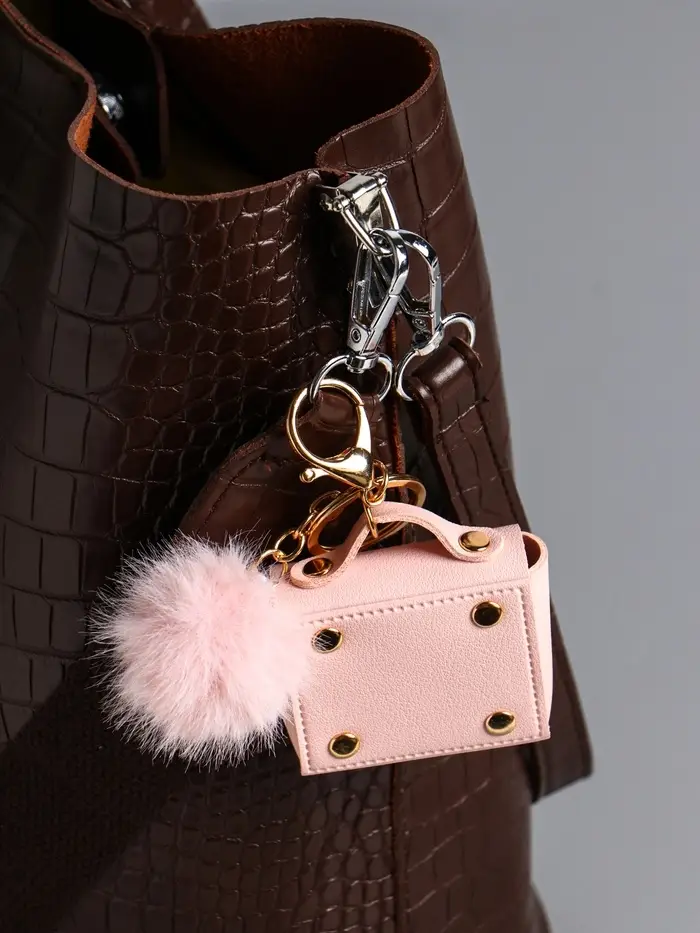 Брелок кожзам с карабином, с пушистиком "Сумочка" нежно-розовый 5,8х2,4х5 см