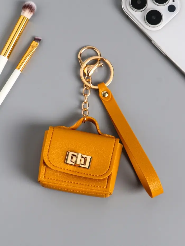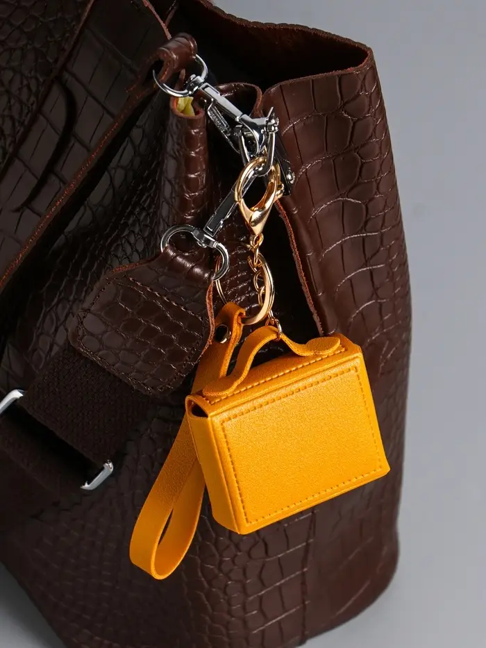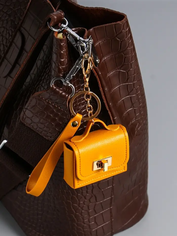 Брелок кожзам с карабином, с ремешком "Сумочка" жёлтый 6,2х2,5х7 см