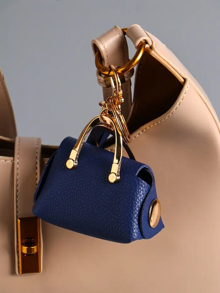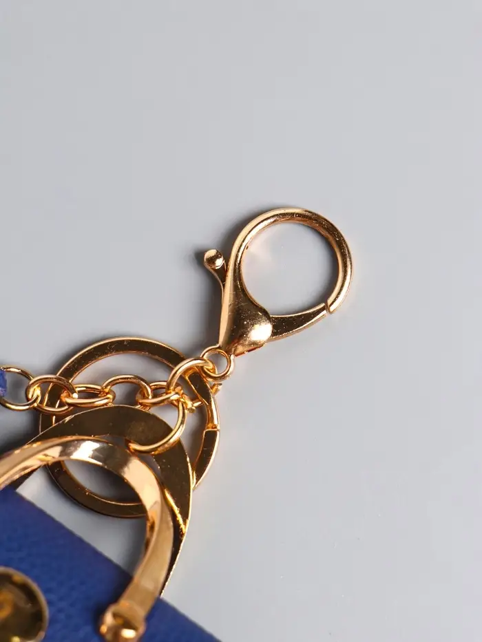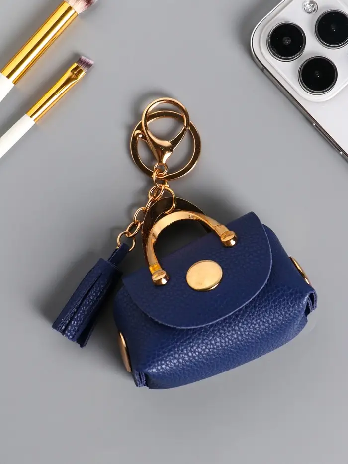 Брелок кожзам с карабином, с кистью "Саквояж" синий 7,5х4х7 см