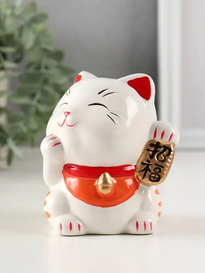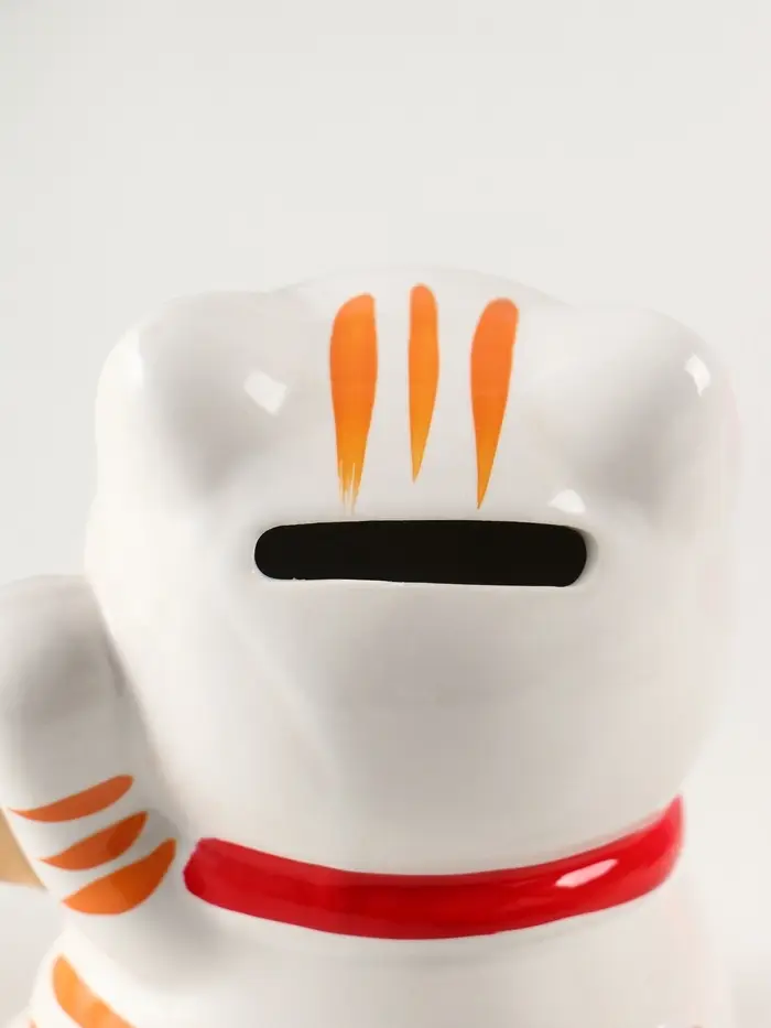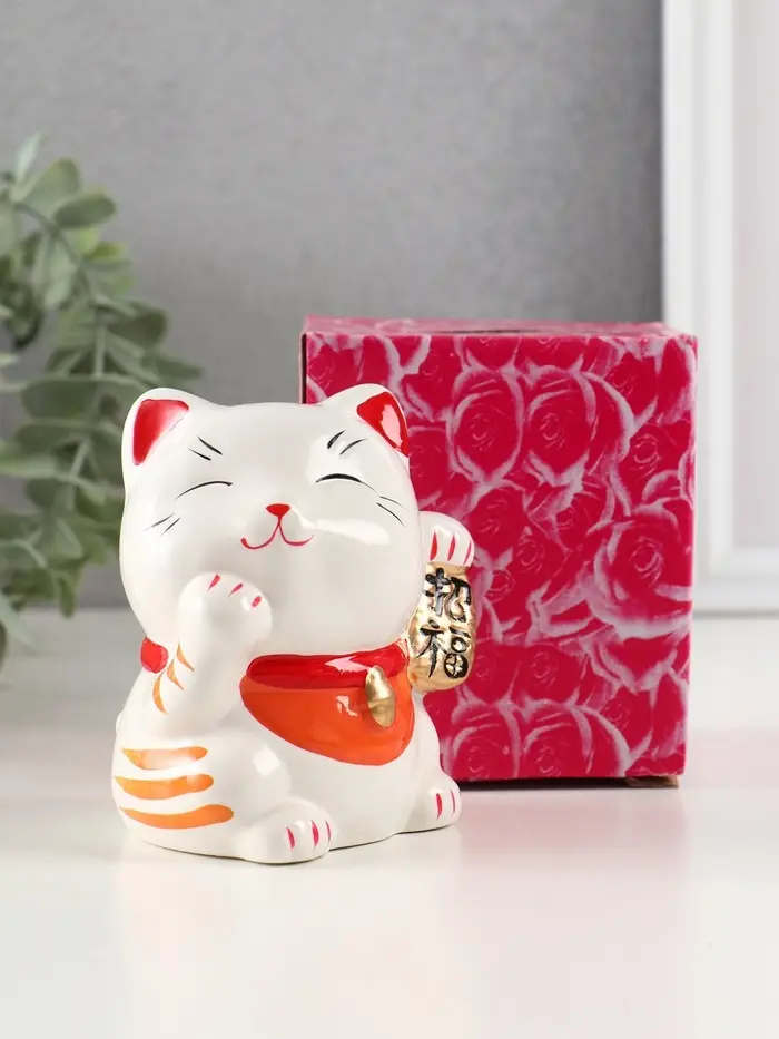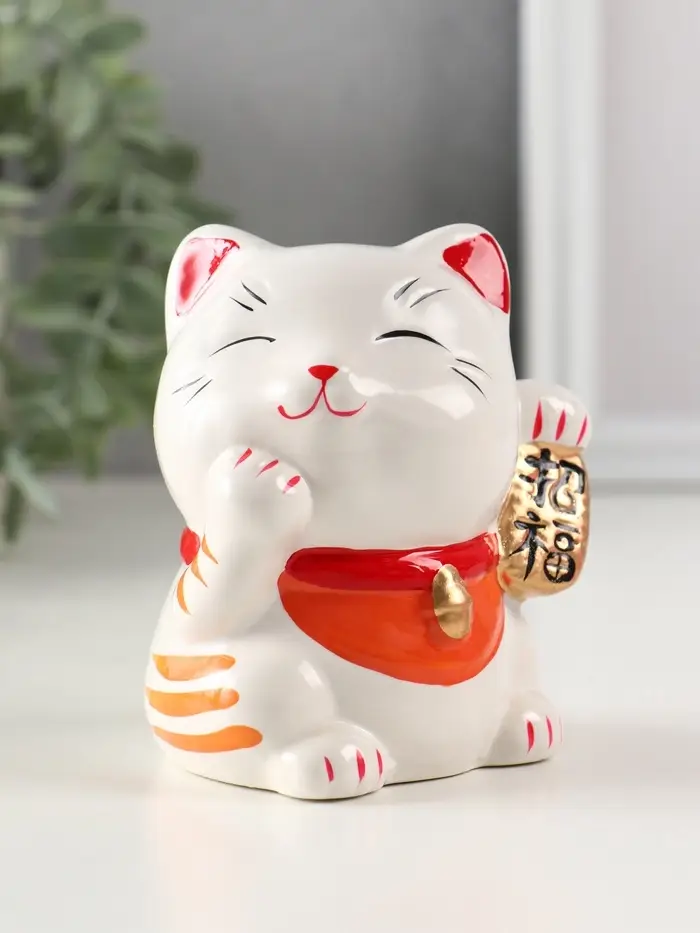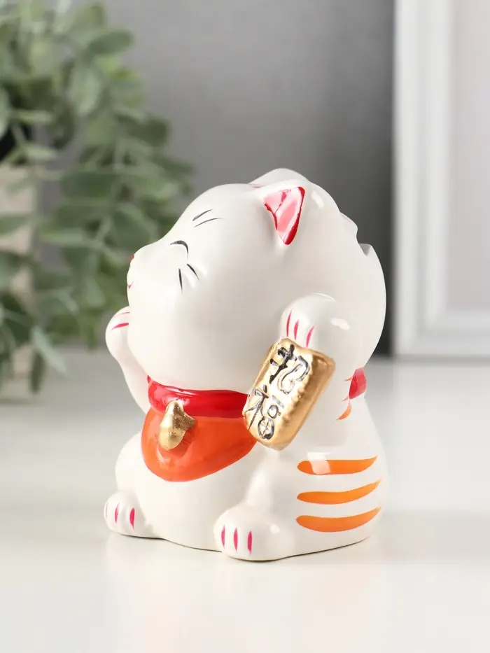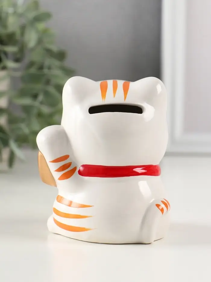 Копилка керамика "Манэки-нэко - иероглиф удача" оранж 7,2х8,3х10 см
