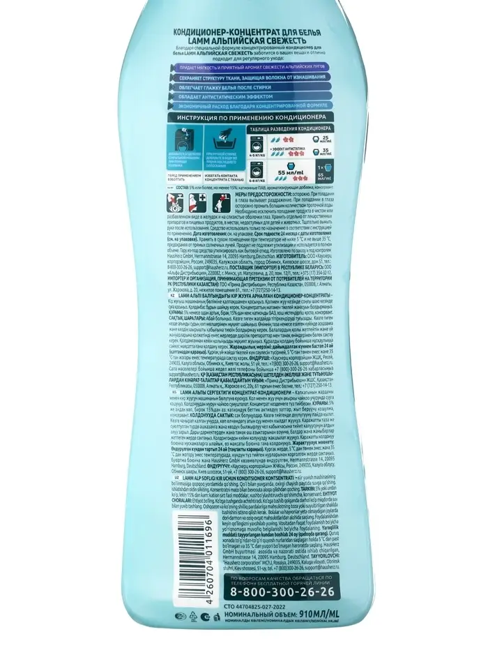 Кондиционер для белья LAMM Альпийская свежесть, 910 мл