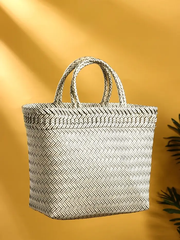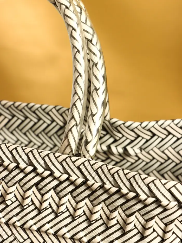 Сумка плетёная пластиковая 30х15х35 см, цв. чёрный-белый