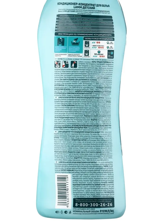 Кондиционер для белья LAMM Детский, 910 мл