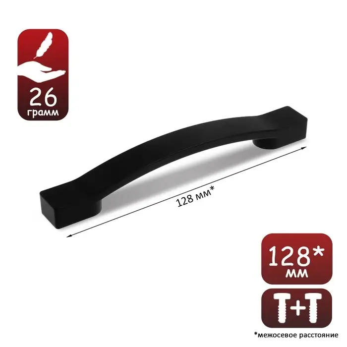 Ручка-скоба С-34, пластик 128 мм, чёрная, матовая