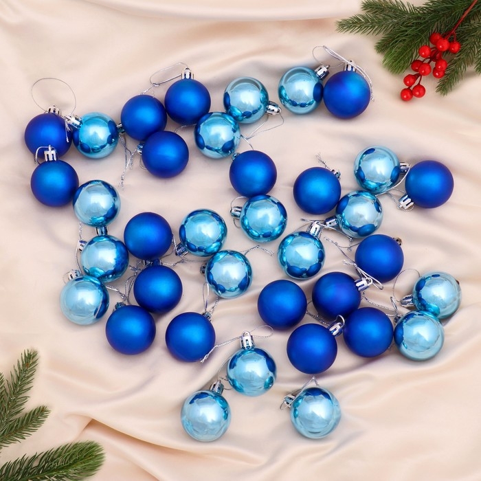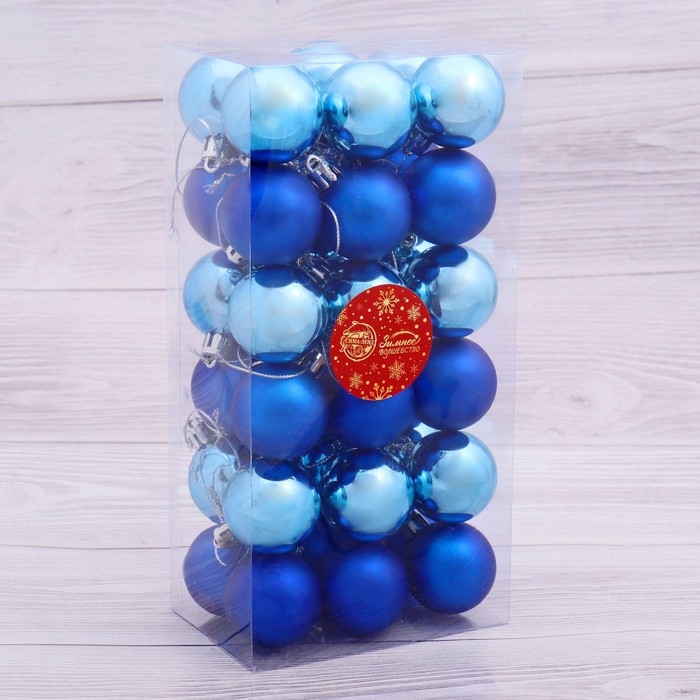 Набор шаров пластик d-4 см, 36 шт "Однотонный" синий