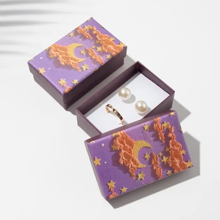 С нашими прекрасными коробочками любой подарок станет еще лучше и ярче. Футляр выполнен из прочного плотного картона. Оптимальный размер коробки 5*8см позволяет разместить разнообразные виды ювелирных изделий – от сережек до колье. Внутри каждой коробочки с крышкой есть Ббелая бархатная подложка. С помощью специальных прорезей на подушечке можно аккуратно разместить и зафиксировать цепочки, гвоздики и перстни. А если убрать подложку, упаковка подойдет даже для часов с мягким плоским ремешком или на цепи.