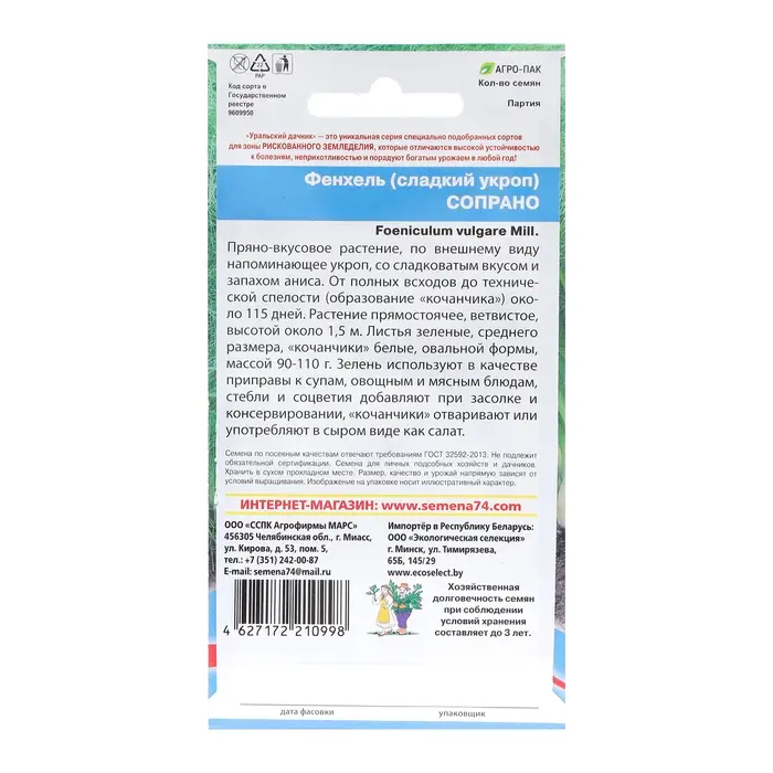 Семена Фенхель обыкновеный Бачата 0,5 г