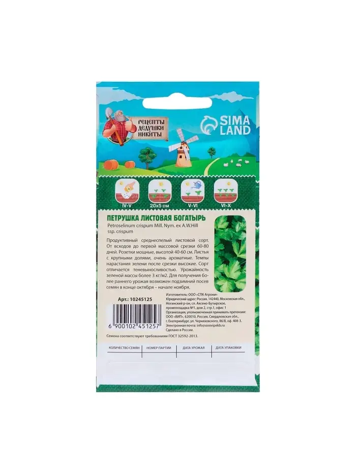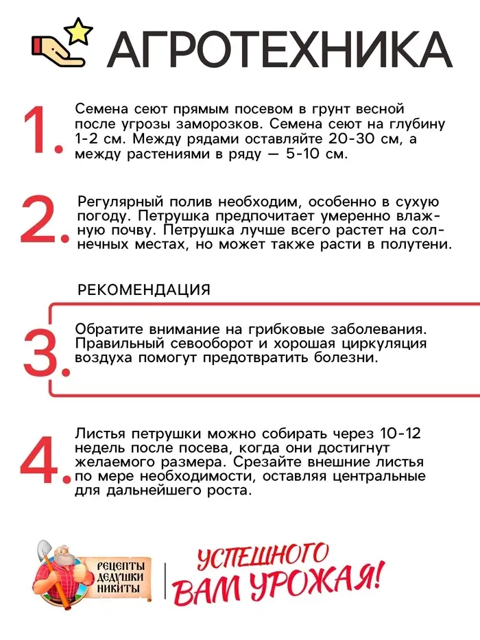 Семена петрушки листовой "Богатырь" – отличный выбор для огородников, желающих вырастить ароматную зелень, которая станет неотъемлемой частью многих блюд.