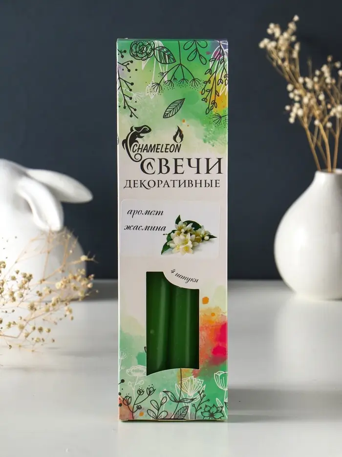 Свечи конические ароматизированные 2,2х24 см (набор 4 шт) 50 гр, 8 ч, жасмин