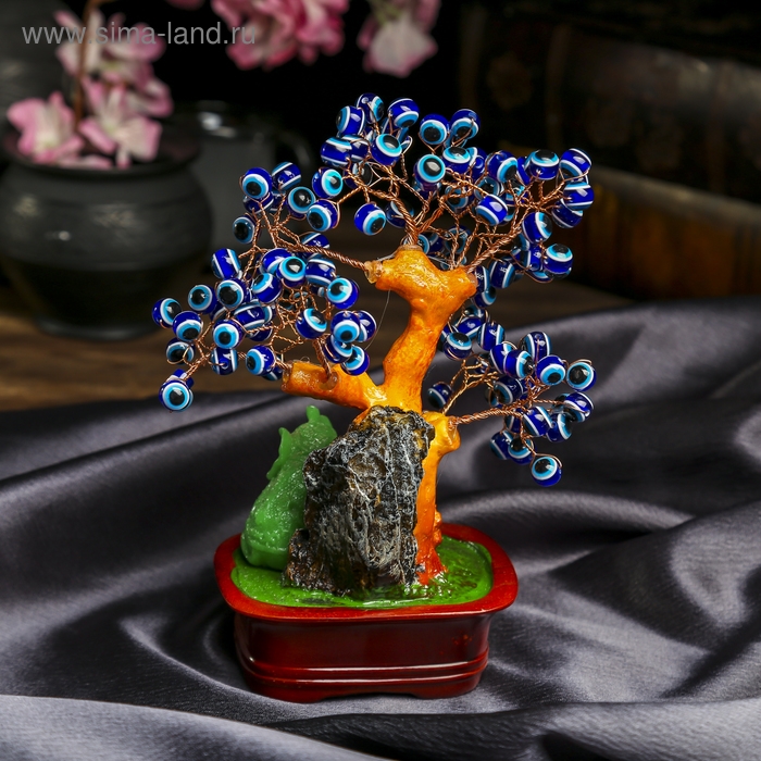 Сувенир "Денежное дерево со слоном" 132 глазика 20х9,5х7,2 см