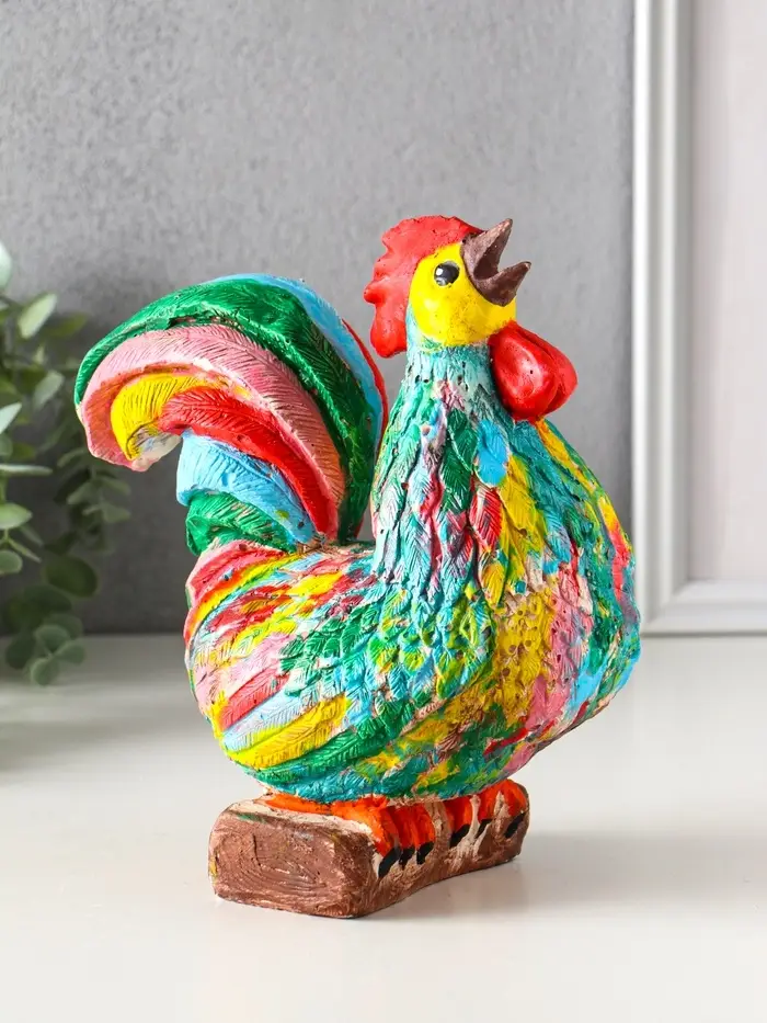 - Узнаваемый образ птицы: Фигурка петуха — это сильный талисман в многих культурах. Он символизирует рассвет, новый старт и активность. Такой образ мотивирует к действию и привлекает энергию процветания в дом.