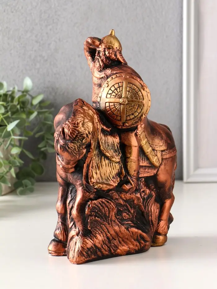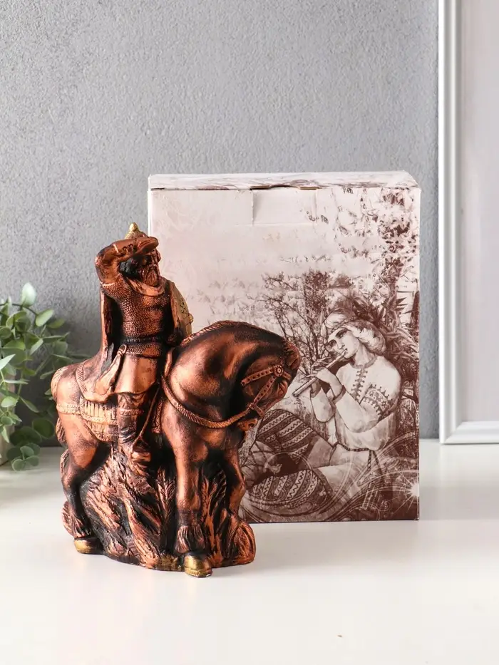 Основа для коллекции: Скульптура выполнена из плотного гипса, что обеспечивает устойчивость и долговечность. Статуэтка «Богатырь на коне» займет достойное место в кабинете или гостиной, напоминая о традициях и национальном характере. Это выбор для тех, кто ценит искусство и историю.