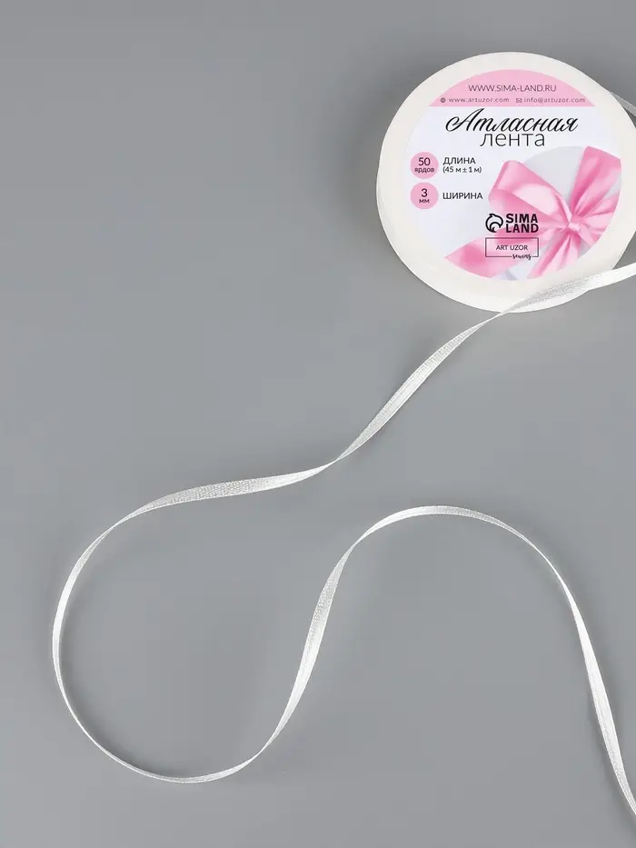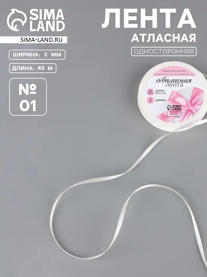Лента атласная, 3 мм, 45±1 м, белая №01