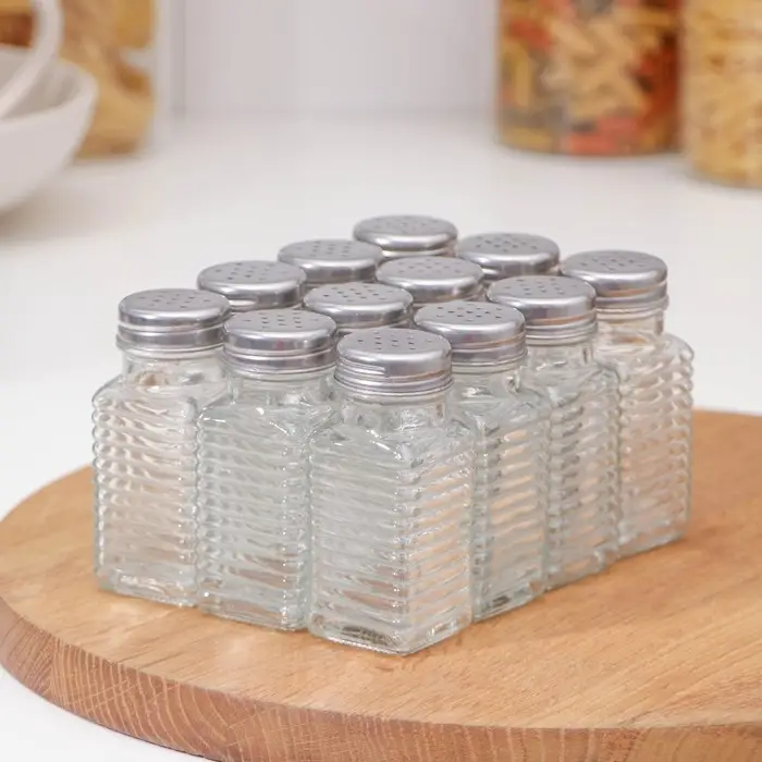 Набор стеклянных солонок Доляна «Линии», 12 предмета: 100 мл, 4×9 см, цвет прозрачный