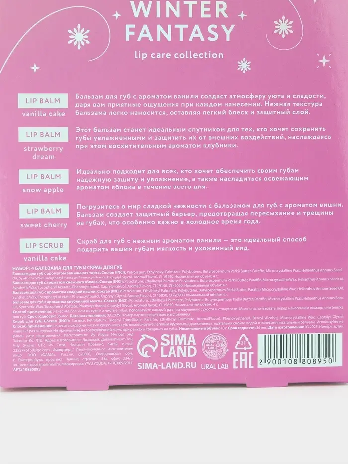 Подарочный набор новогодний Winter Fantasy, 4 бальзама и скраб для губ, URAL LAB