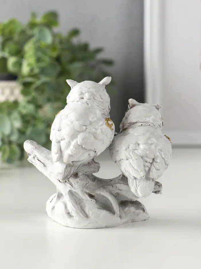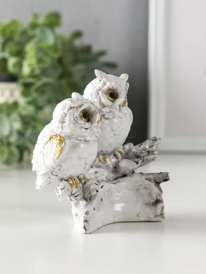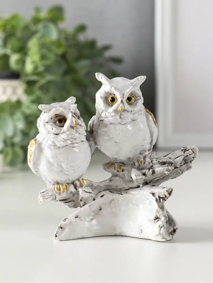 Сувенир полистоун "Белые филины на коряге" 5х9х8,5 см