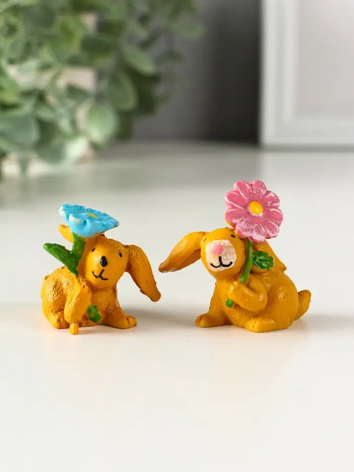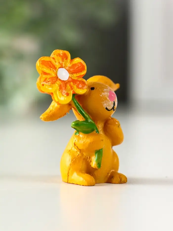 Сувенир полистоун "Заяц с яркой ромашкой" МИКС 2,5х3,8х4,4 см