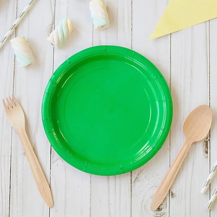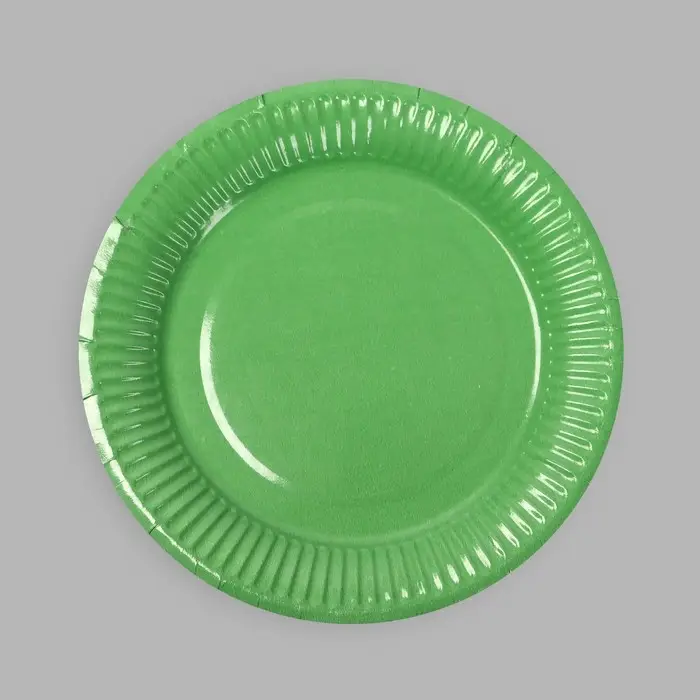 Тарелка одноразовая бумажная однотонная, зеленая, 18 см