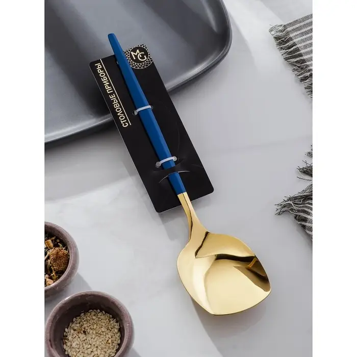 Лопатка из нержавеющей стали Magistro «Грэйс», длина 26 см, цвет ручки голубой, цвет головы золотой