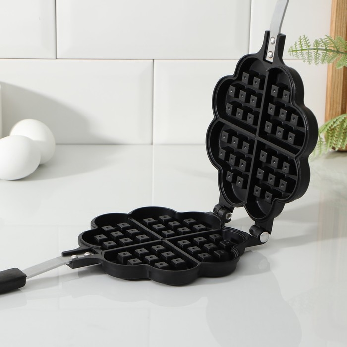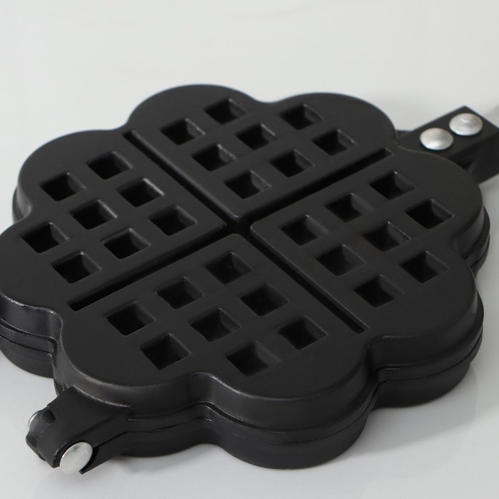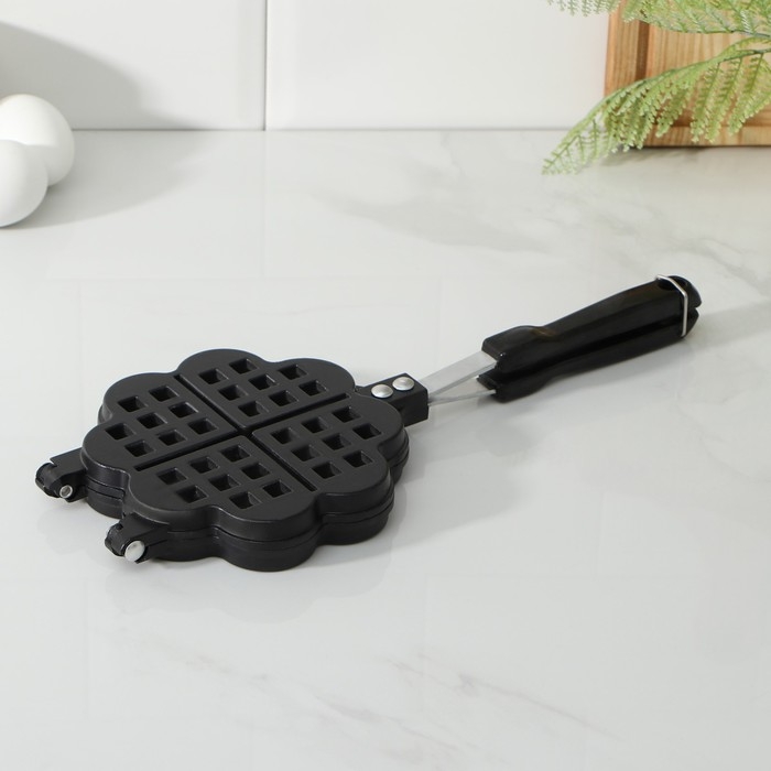 Сковорода двойная Доляна «Венские вафли», d=14 см, пластиковая ручка, цвет чёрный