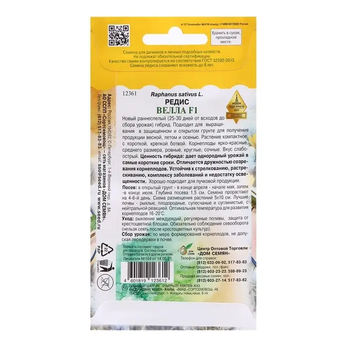 Семена Редис "Велла F1", 60 шт