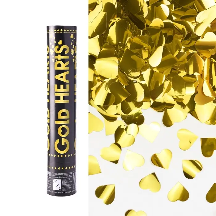 Хлопушка пневматическая "Сердца" фольга, золото, металлик, (12/30 см)