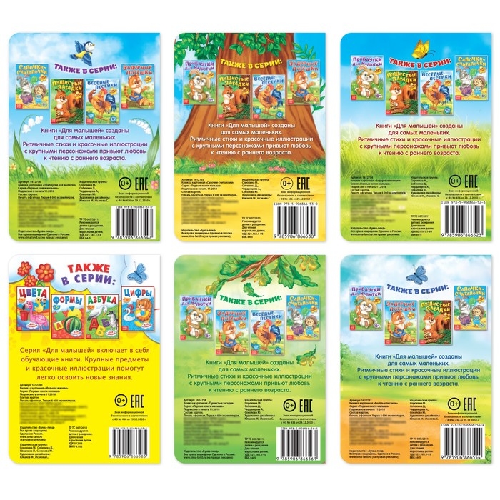 Серия предназначена для самых маленьких читателей. Ребёнка заинтересуют ритмичные стихи, и он с интересом будет рассматривать изображения крупных и красочных персонажей.