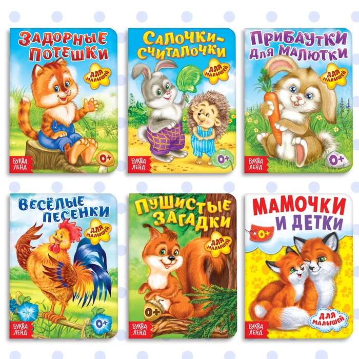 С набором картонных книг малыш с удовольствием прослушает весёлые стихи о животных, отгадает несложные загадки, выучит считалочки и задорные потешки.