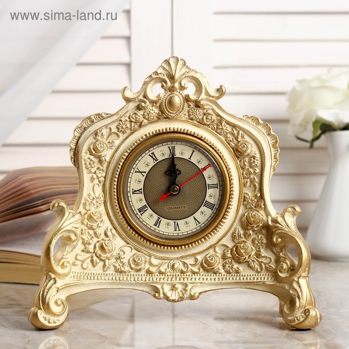 Часы настольные интерьерные каминные, 21 х 19 х 6.5 см, d-7 см, белые с позолотой 3940771