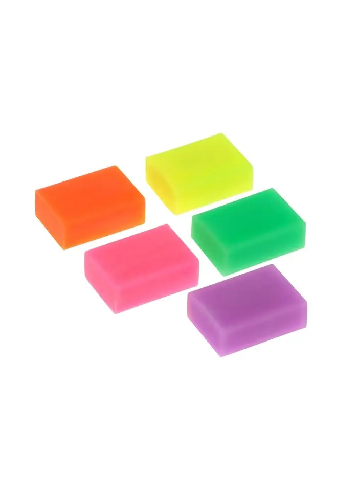 Набор ластиков 5 штук прямоугольных НЕОН 5 цветов (штрихкод на штуке)