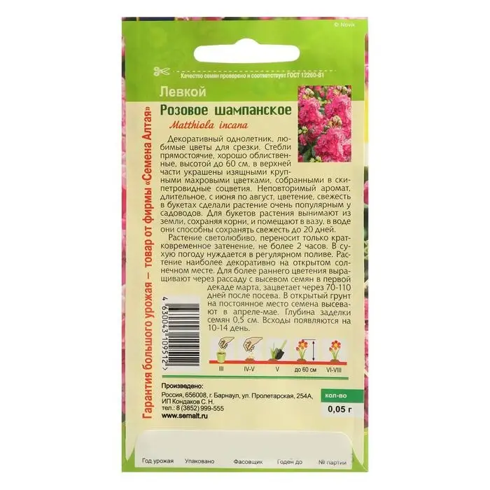 Семена цветов Левкой "Розовое Шампанское", Сем. Алт, ц/п, 0,05 г