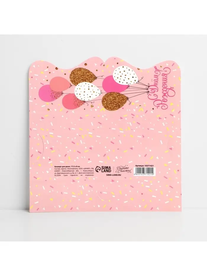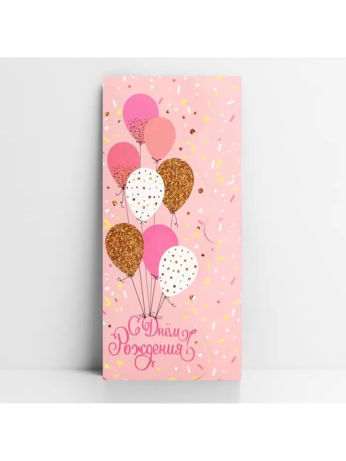 Конверт для денег фигурный «С Днём рождения», нежные шары, 17.5 х 8 см