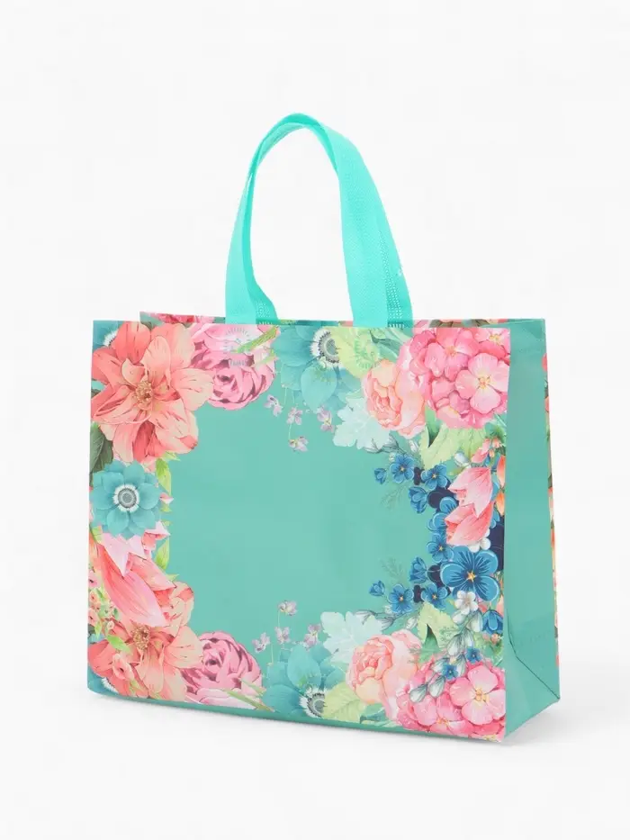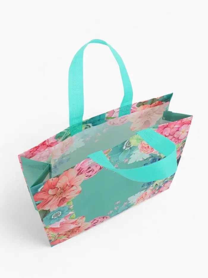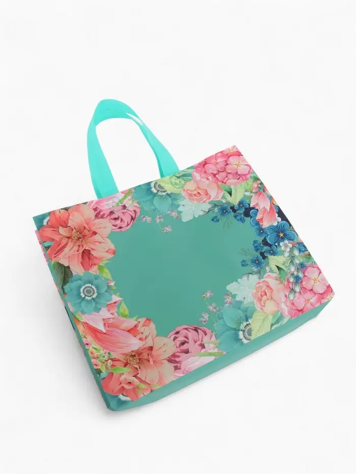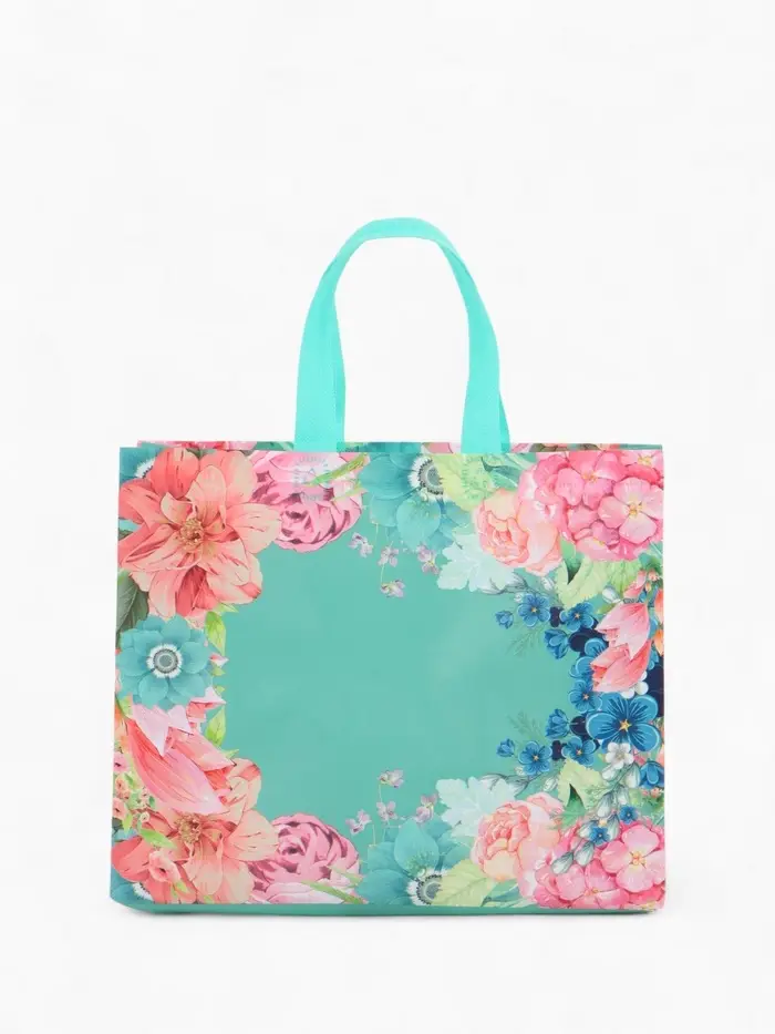 Сумка для покупок Цветы, 32*10*26. отд без молнии, голубой