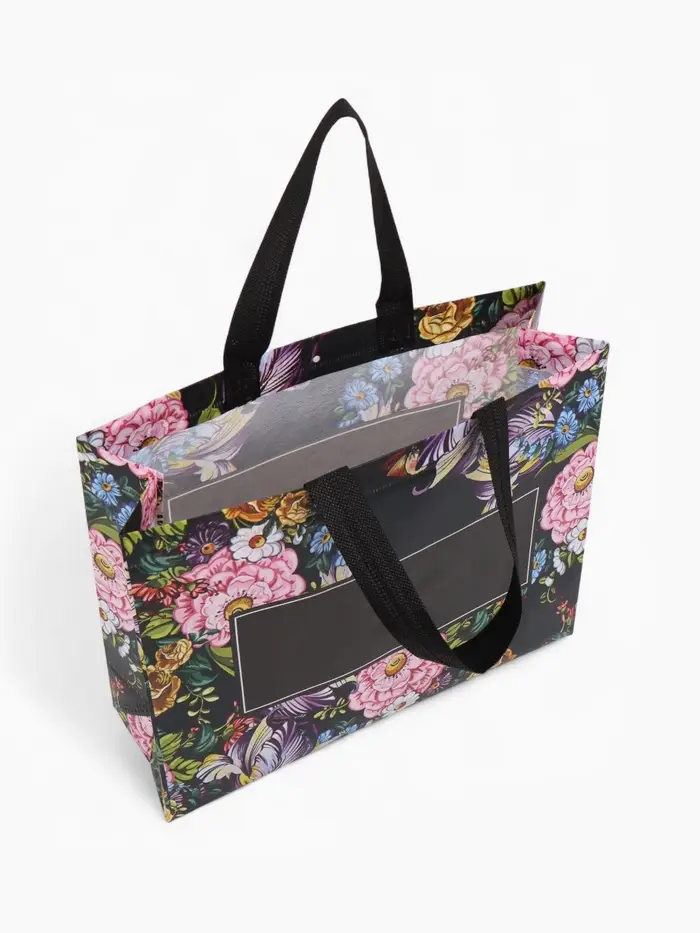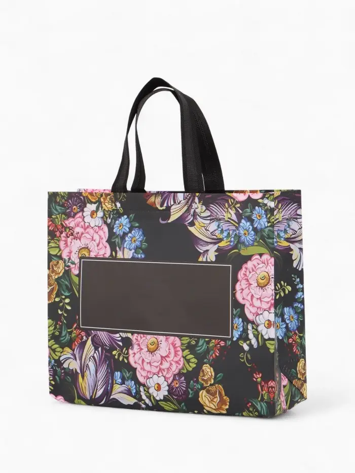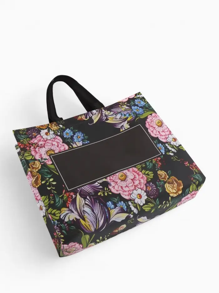 Сумка для покупок Цветы, 32*10*26. отд без молнии, черный