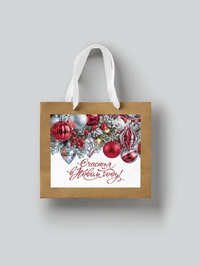 Пакет подарочный крафтовый с пластиковым окном «Счастья», 24×20×11 см