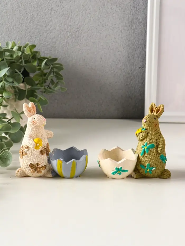 Сувенир полистоун подставка "Зайчики пасхальные" набор 2 шт 5,3х10х10 см