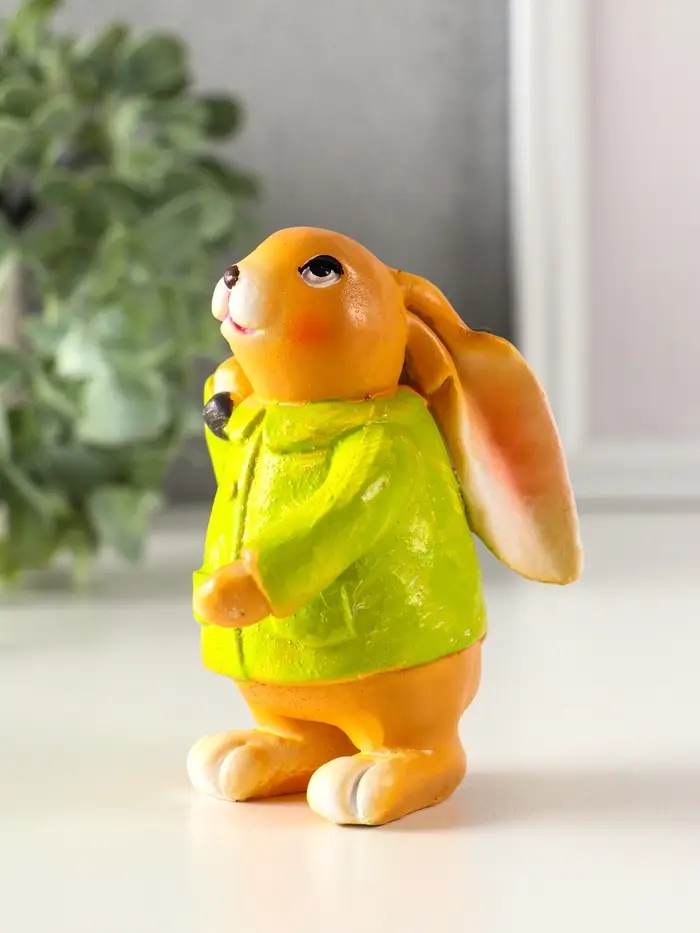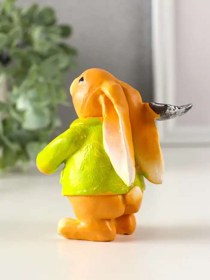 Сувенир полистоун "Зайчик с лопатой, в зелёном пальто" 6х7,5х9,5 см