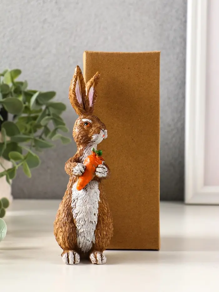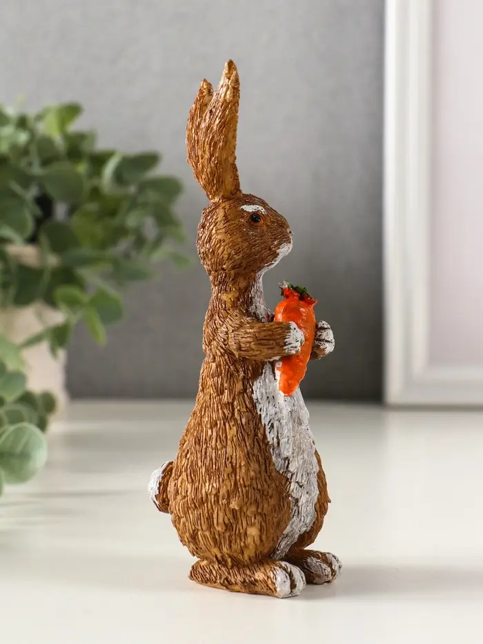 Сувенир полистоун "Кролик с морковью" 4,7х5х15 см