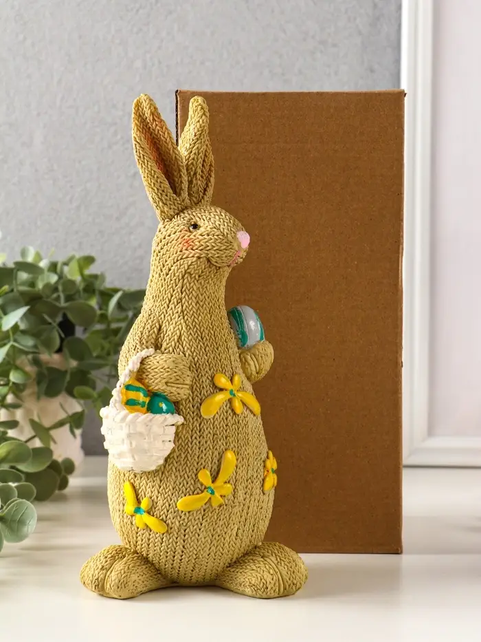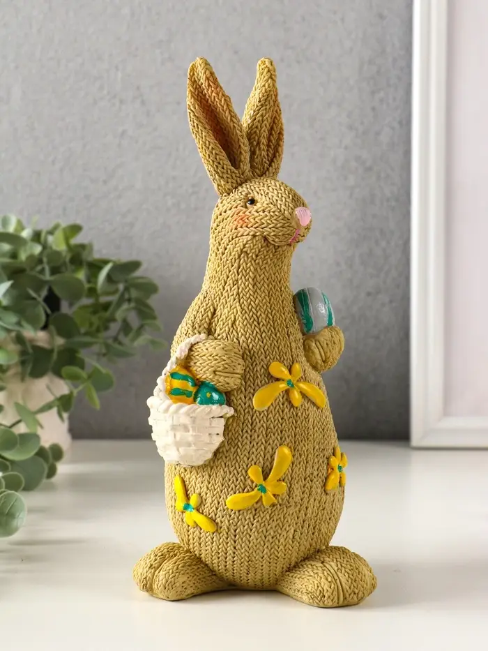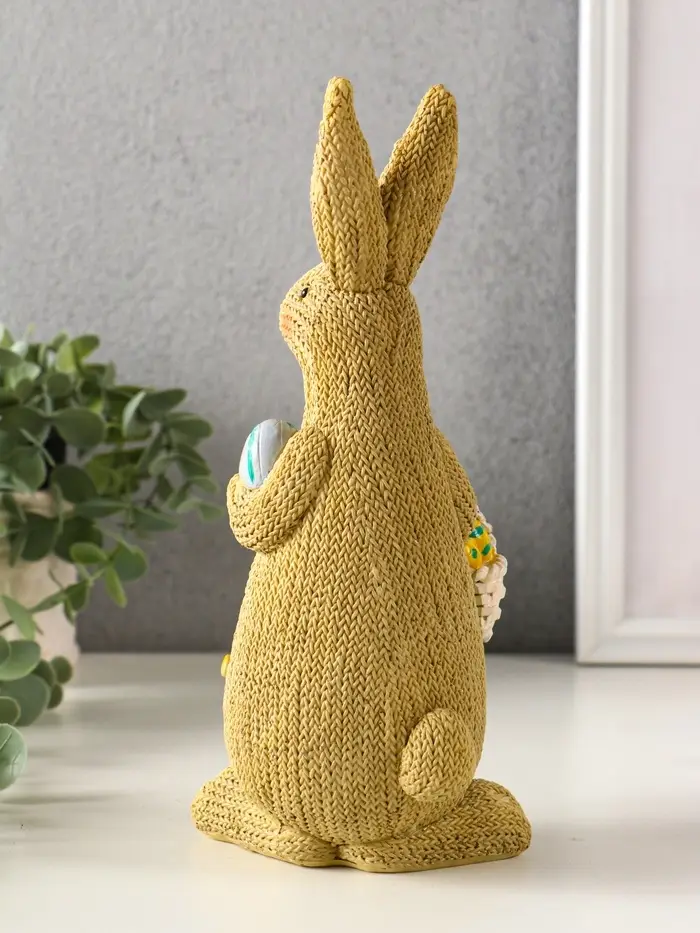 Сувенир полистоун "Зайка вязанный с пасхальными яичками" 8х10,5х23 см