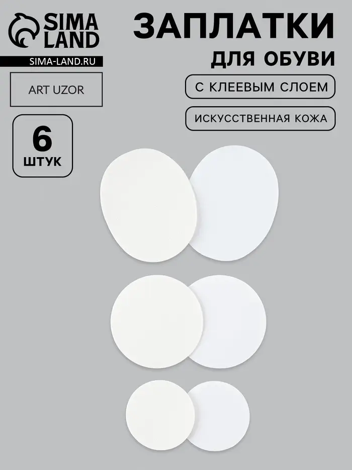 Набор 6шт заплаток клеевых для обуви кожзам белый АУ