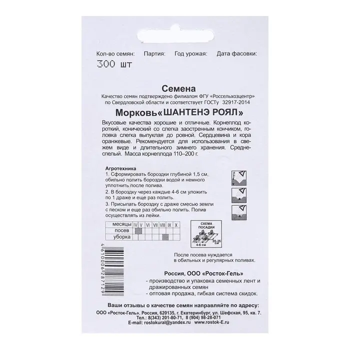 Семена Морковь "ШАНТЕНЭ РОЙАЛ" простое драже, 300 шт