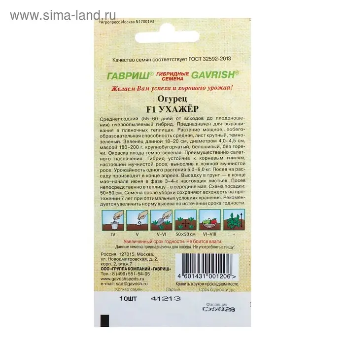 «F1 Ухажёр» — это среднепоздний пчёлоопыляемый гибрид, у которого период от всходов до плодоношения составляет 55–60 дней. Предназначен для плёночных теплиц.