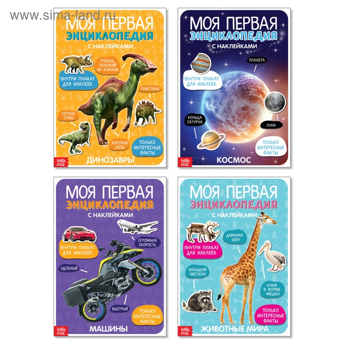 Наклейки «Мои первые энциклопедии», набор 4 шт. по 8 стр., формат А4
