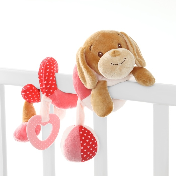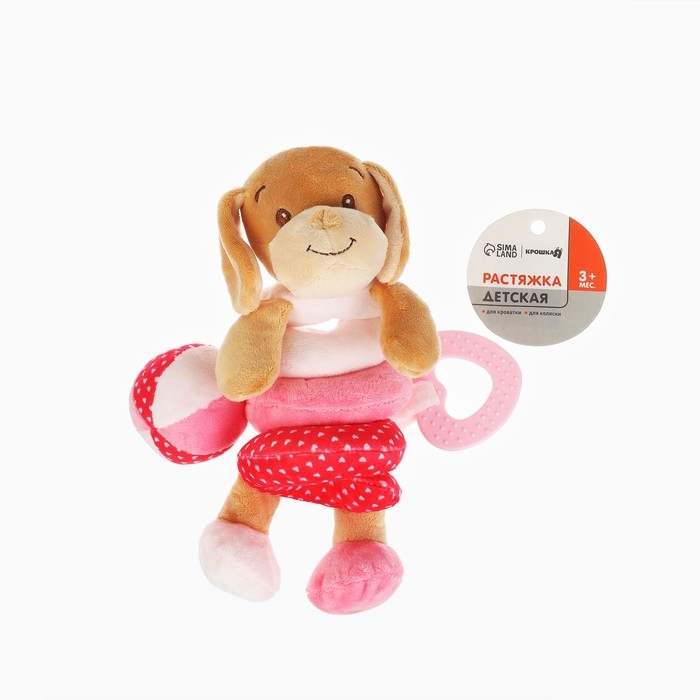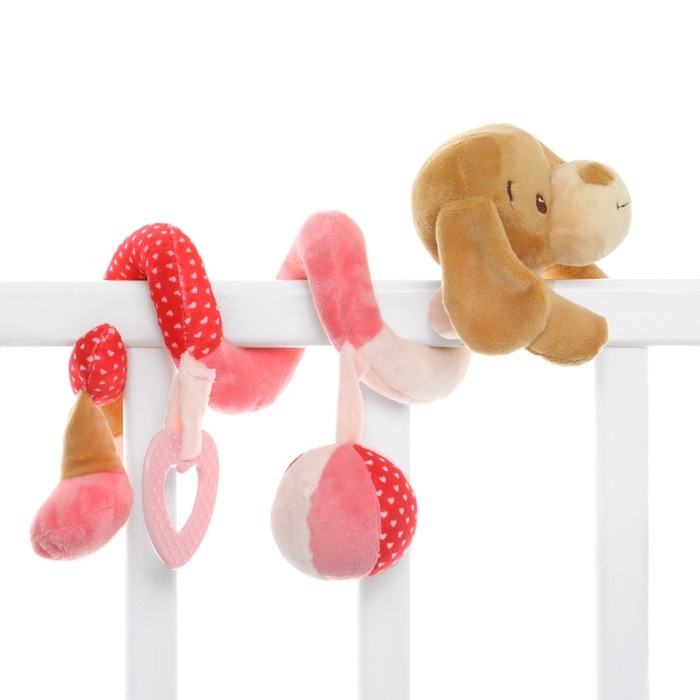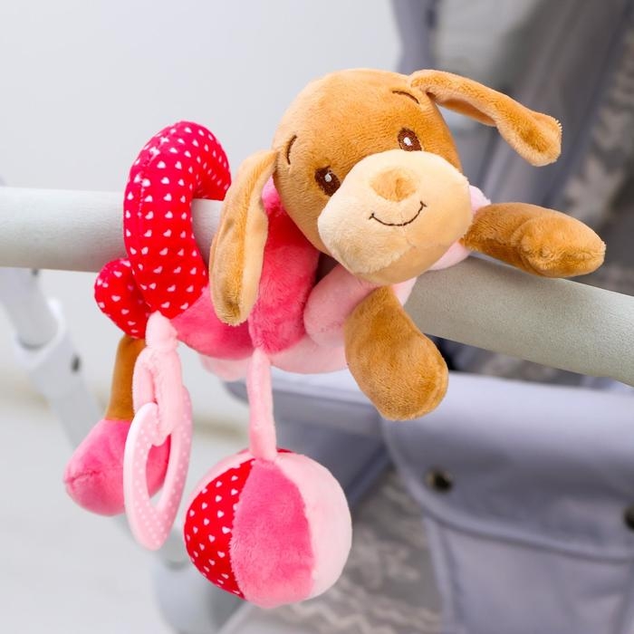 Растяжка - спираль с игрушками дуга на коляску / кроватку для малышей 0+ «Собачка Кути», розовая, Крошка Я 3489