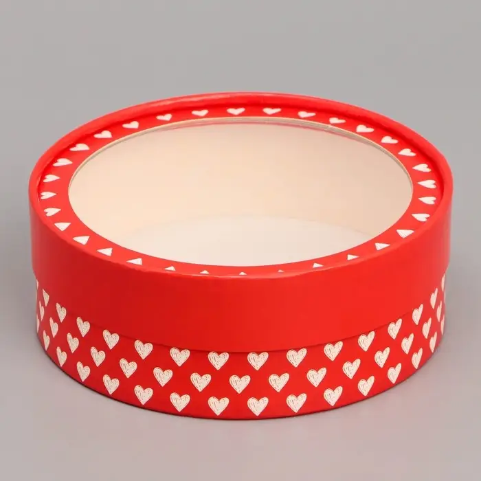 Коробка для макарун, кондитерская упаковка тубус с окном Love 16 х 16 х 5 см