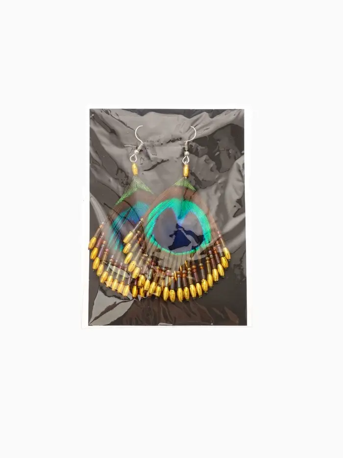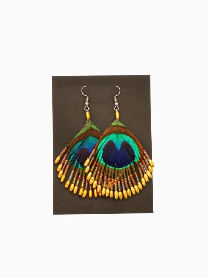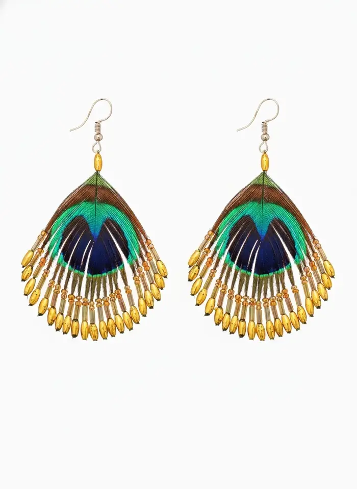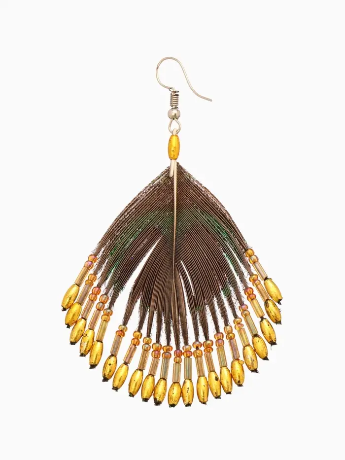 Серьги "Павлин" 5х8 см, цв. жёлтый