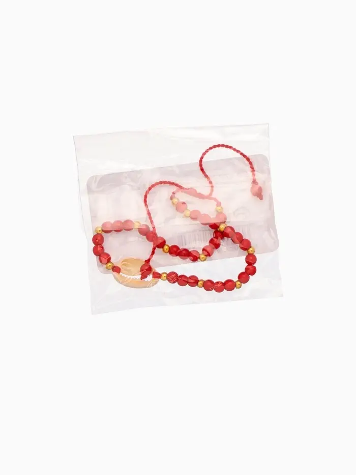 Браслет "Моана" камень пирит, длина 16 см, цв. красный