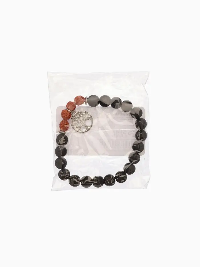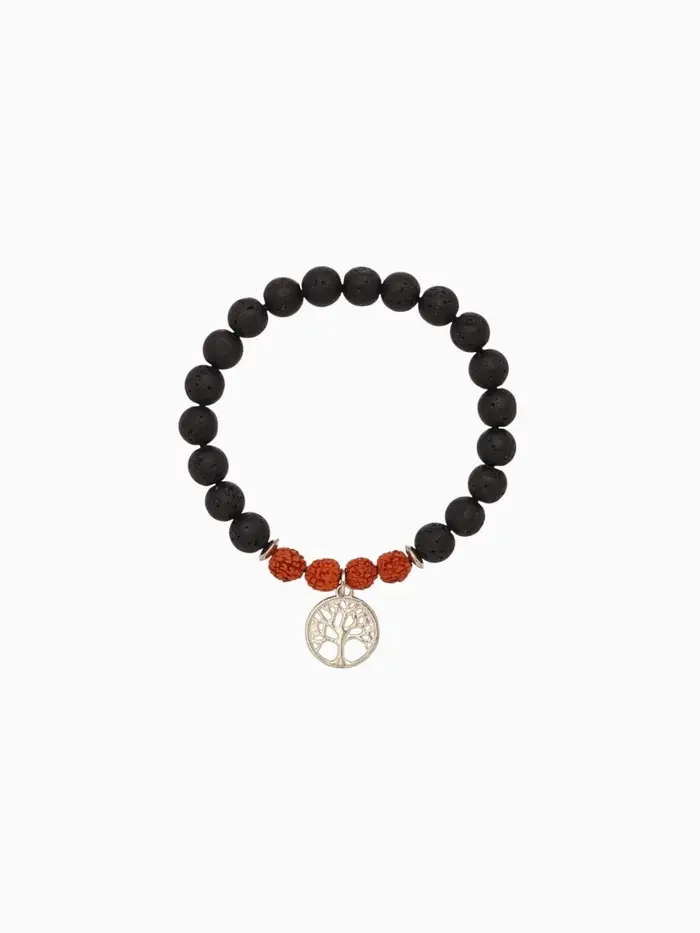 Браслет "Древо жизни" лава, рудракша, длина 18 см, цв. чёрный, коричневый
